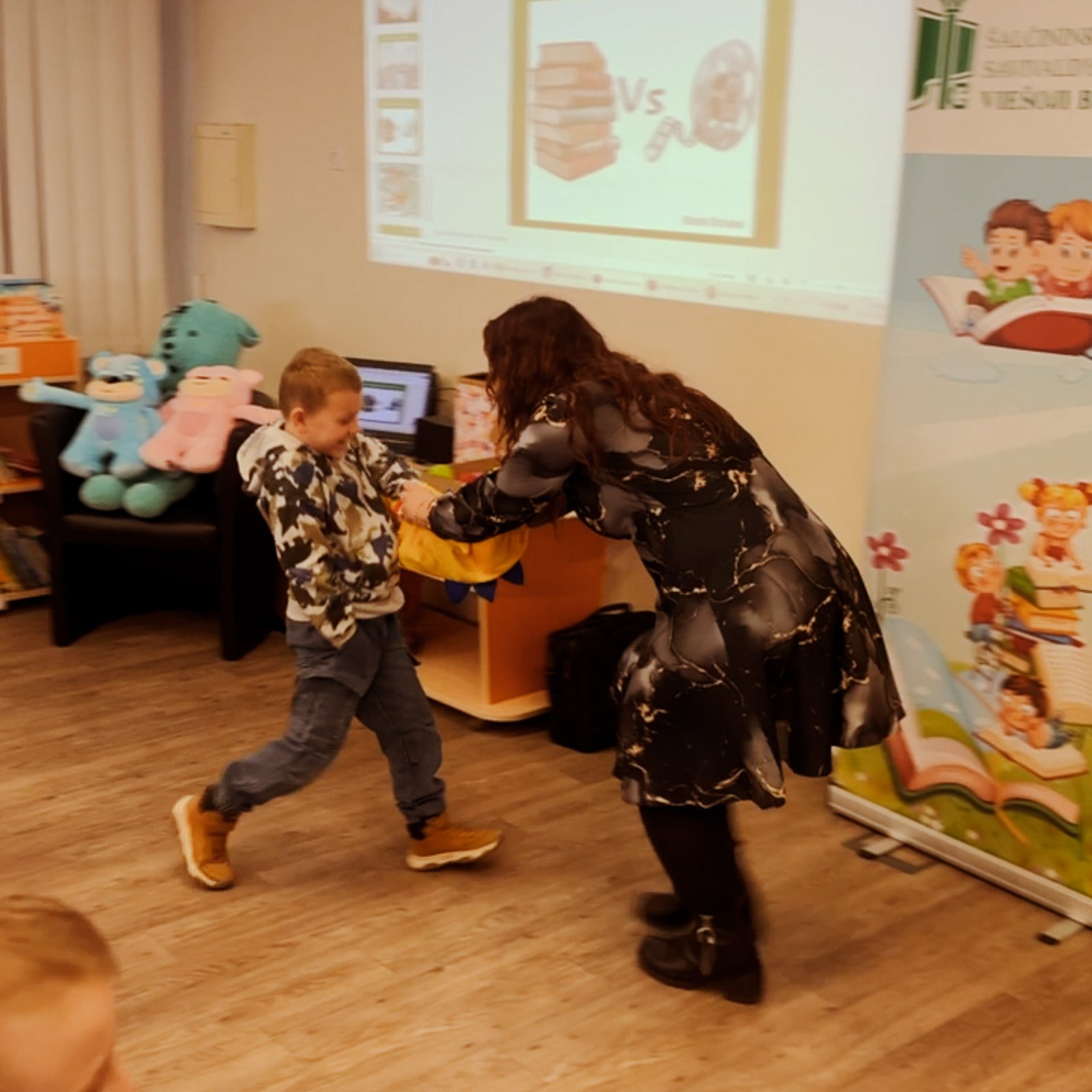 Vaikai ne tik klausėsi pasakojimų apie knygas, bet ir turėjo galimybę pamatyti žaisliukais virtusius knygų personažus: Meškiną Tapatulį ir jo anūkėlius, Riką Rijiką ir Žiovuliuką. Renginio metu vaikai išbandė linksmus žaidimus su naujais žaislais ir visi kartu smagiai nusifotografavo. Tai buvo puiki proga vaikams ne tik pažinti literatūros pasaulį, bet ir smagiai praleisti laiką kartu!